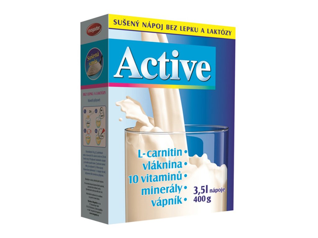 Sušený nápoj Active je bezlaktózovou a bezlepkovou alternativou kravského mléka obohacený o vlákninu, vitamíny (B1, B2, B6, B12, C, E), minerální látky (hořčík, fosfor, vápník, mangan, selen, železo a zinek) a L-carnitin. Výrobek neobsahuje geneticky modifikované organismy. Je vhodný pro alergiky na laktózu kravského mléka, pro osoby s bezlepkovou dietou a zájemce o racionální stravování. Sušený nápoj Active je snadno rozpustný, při použití se nesráží.
