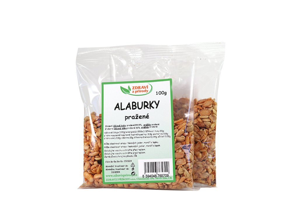 Pražené alaburky jsou sójové boby, které se po namočení pečou nebo praží dozlatova, čímž získávají křupavou texturu a chuť podobnou arašídům. Jsou oblíbenou zdravou svačinkou, která slouží jako méně energetická náhrada tradičních oříšků, je bohatá na bílkoviny a je vhodná pro lidi s alergií na běžné ořechy.