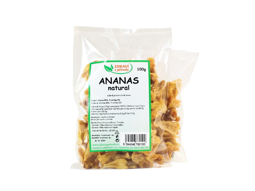 Ananas natural jsou sušené, neslazené kousky ananasu, určené ke konzumaci buď samotné pro mimořádně zdravou svačinku, nebo se přidávají do cereálních směsí, kaší, jogurtu a dalších pokrmů. Jsou výbornou variantou originálního rychlého občerstvení, při chuti na něco zajímavého nebo jako originální tečka po jídle. Lze s nimi experimentovat při výrobě a dekoraci dezertů, ovocných salátů a sladkých pokrmů.