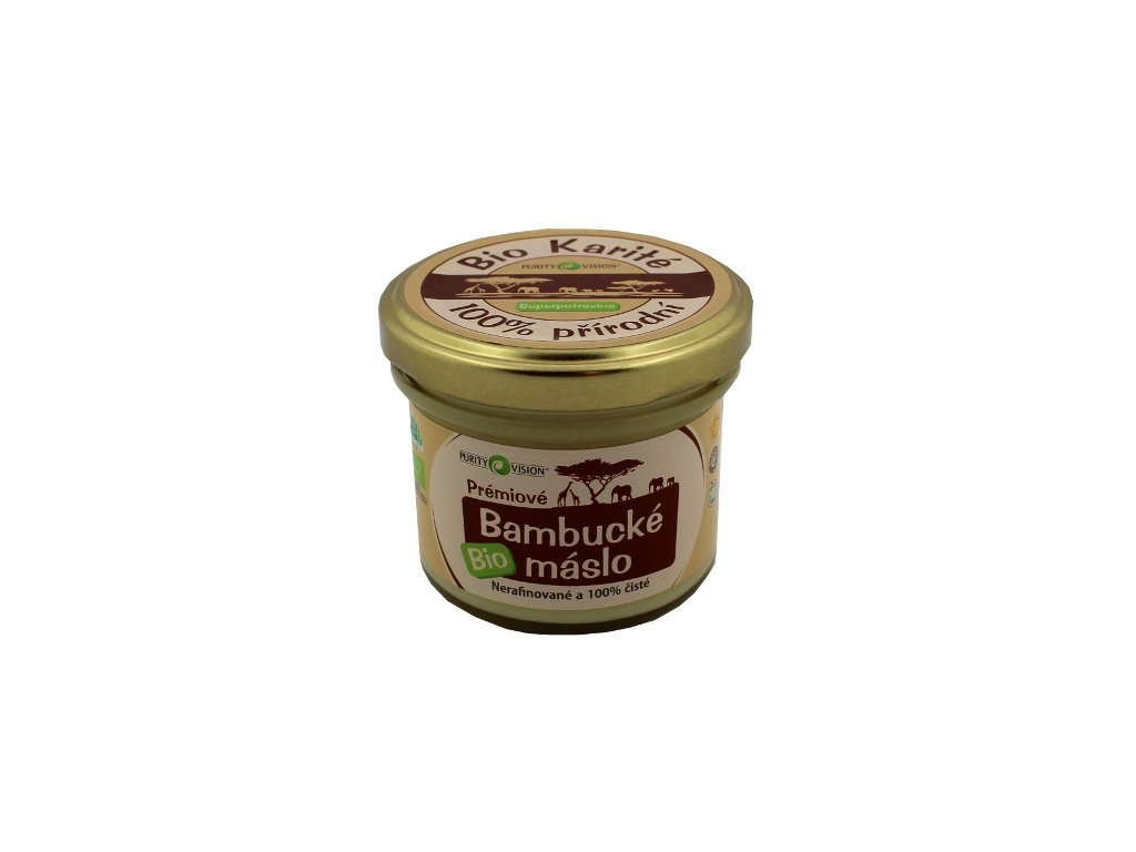 Bambucké máslo je přírodní tuk získávaný z ořechů stromu Shea (Vitellaria paradoxa). Bambucké máslo Purity Vision je prémiové nerafinované BIO bambucké máslo bohaté na výživné látky, které prospívají suché a citlivé pokožce a pleti. Má jemnou krémovou konzistenci, díky které umožňuje snadnou manipulaci, a příjemnou oříškovou vůni. Může aktivovat a podpořit tvorbu kolagenu a tím celkový stav pleti. Intenzivně přispívá k obnově pružnosti a hydratace pokožky. Máslo je vhodné v péči o ekzematickou pokožku a pokožku náchylnou k opruzeninám. Vzhledem k tomu, že je máslo Purity Vision nerafinované a 100% přírodní, lze jej použít také v kuchyni.