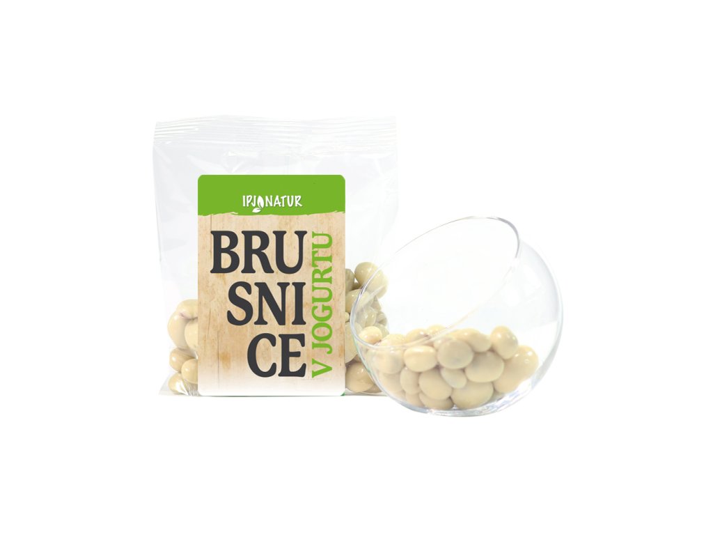 Brusnice v jogurtu jsou sušené plody klikvy velkoplodé obalené ve sladké krémové jogurtové polevě. Jsou výbornou variantou originálního rychlého občerstvení a vhodnou alternativou pro rychlou svačinku sladkokyselkavé chuti, pro pohoštění, při chuti na něco sladkého nebo ve studené kuchyni k přípravě a dekoraci dezertů.