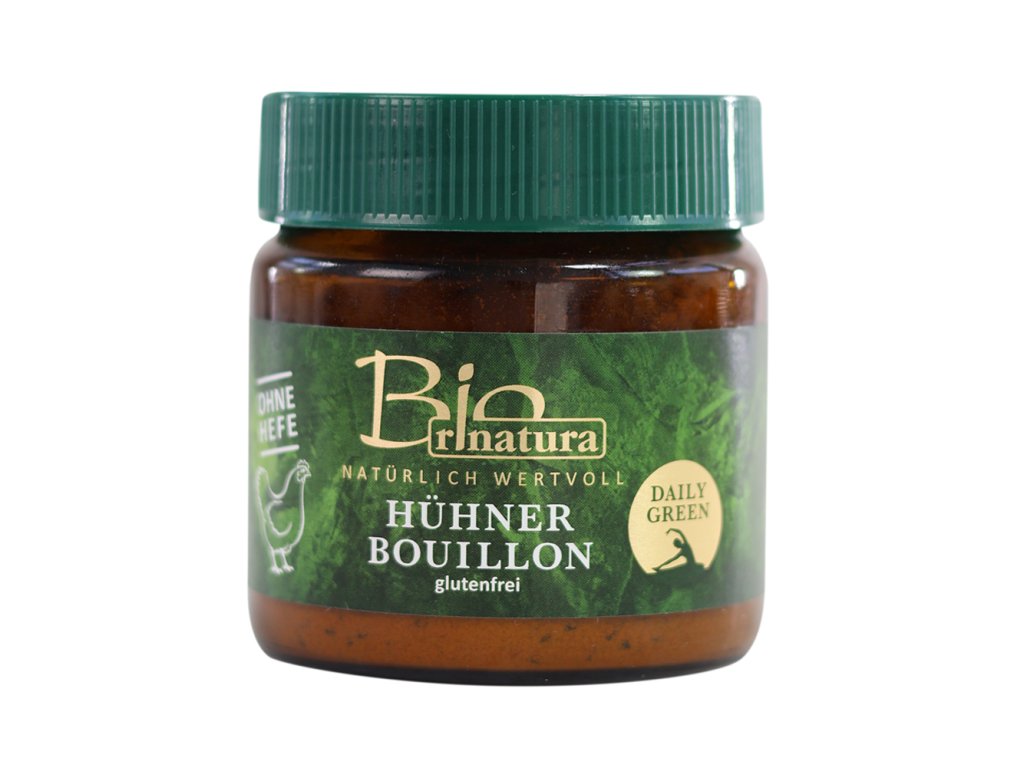 Bio bezlepkový kuřecí bujon v prášku je šetrně zpracovaný bujón v praktické práškové konzistenci, kde obsažené ingredience pocházejí z kontrolovaného ekologického zemědělství, u nějž se dohlíží na kvalitu potravin. Obsažená mořská sůl je obohacena o minerální látky, jako je draslík, hořčík a vápník. Bujón je vhodný pro vegany a alergiky na lepek či laktózu nebo pro všechny, kdo upřednostňují bezlepkové a bezlaktózové varianty potravin.