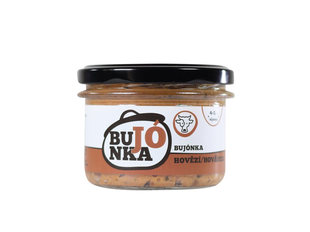 Hovězí bujónka je jemná pasta plná chutí, vyrobená pouze z přírodních surovin nejvyšší kvality - z masa z českých farem, čerstvé zeleniny, bylinek, koření a soli. Bujón neobsahuje žádnou chemii, lepek ani laktózu a proto je vhodný pro alergiky a dietní stravování. Pasta slouží k jednoduchému a rychlému ochucení polévek, omáček a masových i zeleninových pokrmů a směsí, stejně tak dobře, jako k ochucení příloh.