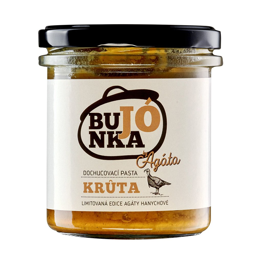 Krůtí bujónka je jemná pasta plná chutí, vyrobená pouze z přírodních surovin nejvyšší kvality - z masa z českých farem, čerstvé zeleniny, bylinek, koření a soli. Bujón neobsahuje žádnou chemii, lepek ani laktózu a proto je vhodný pro alergiky a dietní stravování. Pasta slouží k jednoduchému a rychlému ochucení polévek, omáček a masových i zeleninových pokrmů a směsí, stejně tak dobře, jako k ochucení příloh.
