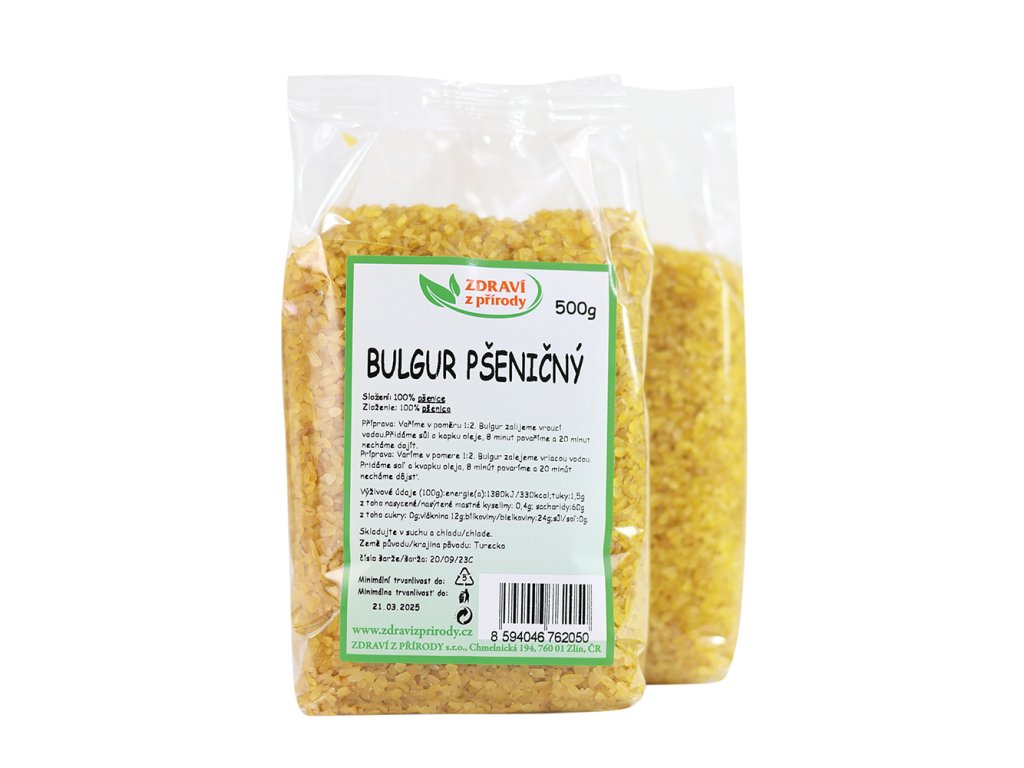Pšeničný bulgur je předvařená a jemně rozdrcená pšenice, která se vyrábí z celých, nerozbrušených zrn tvrdé pšenice. Bulgur se stává neodmyslitelnou součástí dnešní kuchyně, lze jej použít při přípravě jak slaných tak sladkých chutných a výživných jídel a pokrmů. Bulgur je bohatý na rostlinné bílkoviny, sacharidy a tuky, vlákninu, vitamíny A, D, E, K, C, B1, B2, B3, B6, B9 a PP a minerály vápník, železo, draslík, fosfor, sodík, hořčík, zinek, měď, mangan a selen.