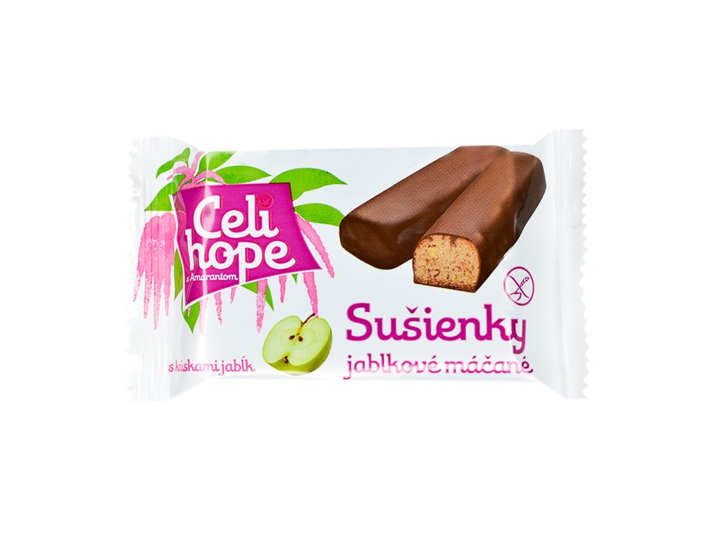 Nabídka bezlepkových sušenek řady Celihope obsahuje sušenky jablečné máčené , polomáčené a kakaovo-skořicovou sušenku.