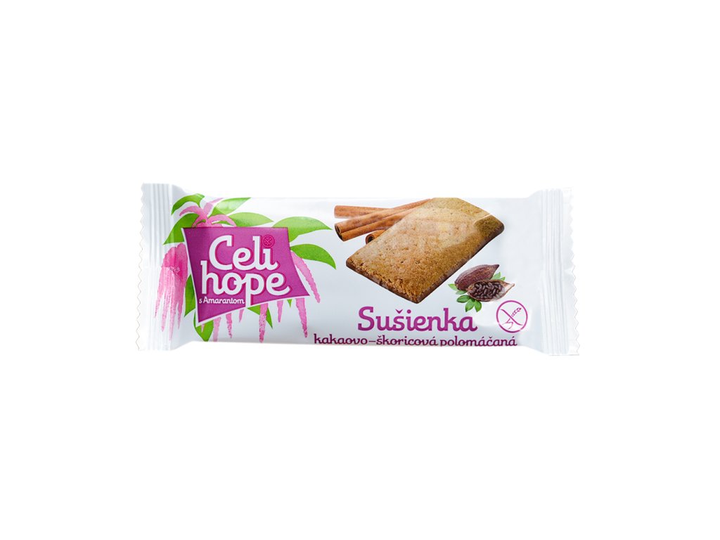 Bezlepková kakaovo-skořicová sušenka je bezlepková sušenka polomáčená v kakaové polevě. Sušenka je obohacená o kyselinu listovou a je vhodným rychlým občerstvením při fyzické zátěži, sportovních výkonech, v práci, ve škole nebo při cestování.