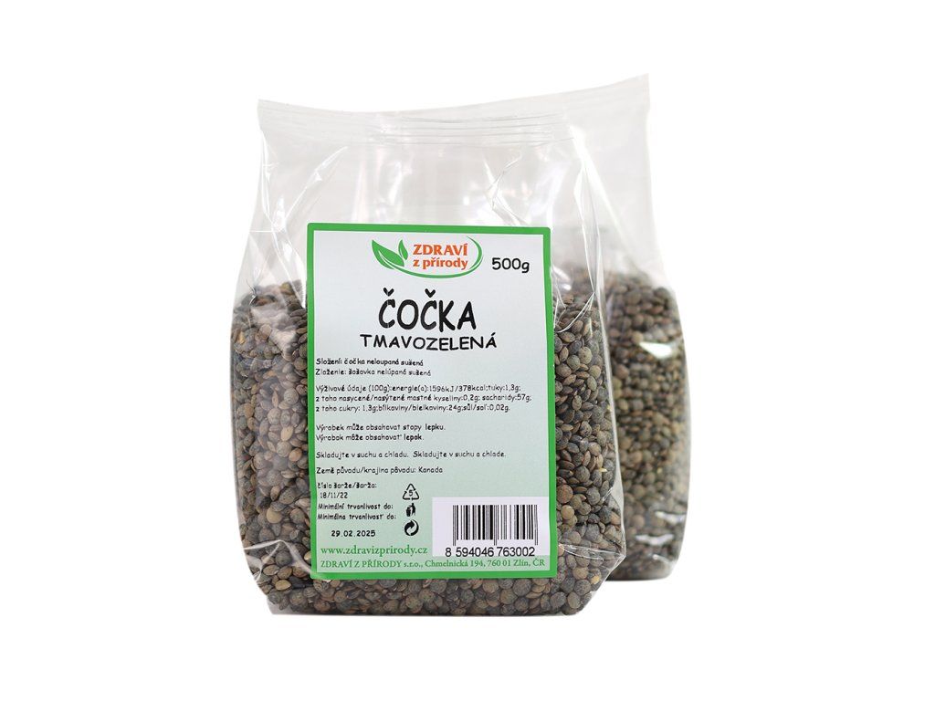 Tmavozelená čočka má specifickou kořeněnou chuť, po uvaření zachovává svůj tvar, proto je velmi oblíbenou odrůdou se širokým využitím. Je vhodná především do salátů a hojně se používá do polévek. Tuto čočku není třeba před vačením namáčet. Tmavozelená čočka má vyšší obsah vlákniny než ostatní čočky. Obsahuje bílkoviny, vlákninu, minerály jako je hořčík, železo a vápník a vitamíny z řady B.