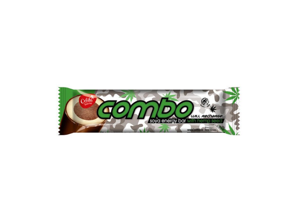 Sojovo - kakaová tyčinka Combo s konopným semínkem je energetická cukrovinka obohacená o konopná semínka - sojový váleček obalený v lahodné tmavé kakaové polevě. Svou velikostí se vejde do každé kapsy a svou chutí nezklame jako rychlé občerstvení nejen doma, ale kdekoliv je třeba. Je přirozeně bezlepkový, s vysokým obsahem bílkovin, a proto představuje ideální rychlou svačinku kdykoli během dne.