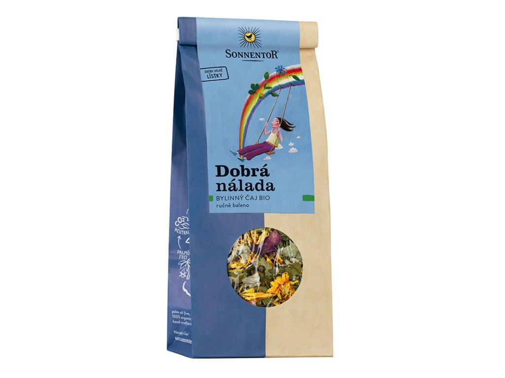 Čaj Dobrá nálada je sypaná, ručně balená bylinná směs v bio kvalitě. Tento bylinný čaj okouzluje mátovým nádechem. Dokonale doprovází pokrmy z ryb i těstovin a imponuje také letním dezertům.