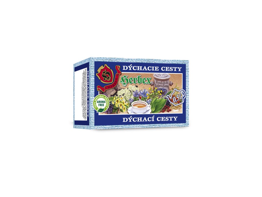 Čaj na dýchací cesty je směsný porcovaný čaj s obsahem tymiánu, černého bezu, fenyklu, bedrníku, jitrocele, divizny, prvosenky a slézu - síla přírody v kombinaci bylin, která může přispět a podpořit normální činnost dýchacích cest. Tymián může ulehčit odkašlávání a pomoci při suchém kašli, jitrocel a máta mohou zmírnit podráždění krku a hltanu.