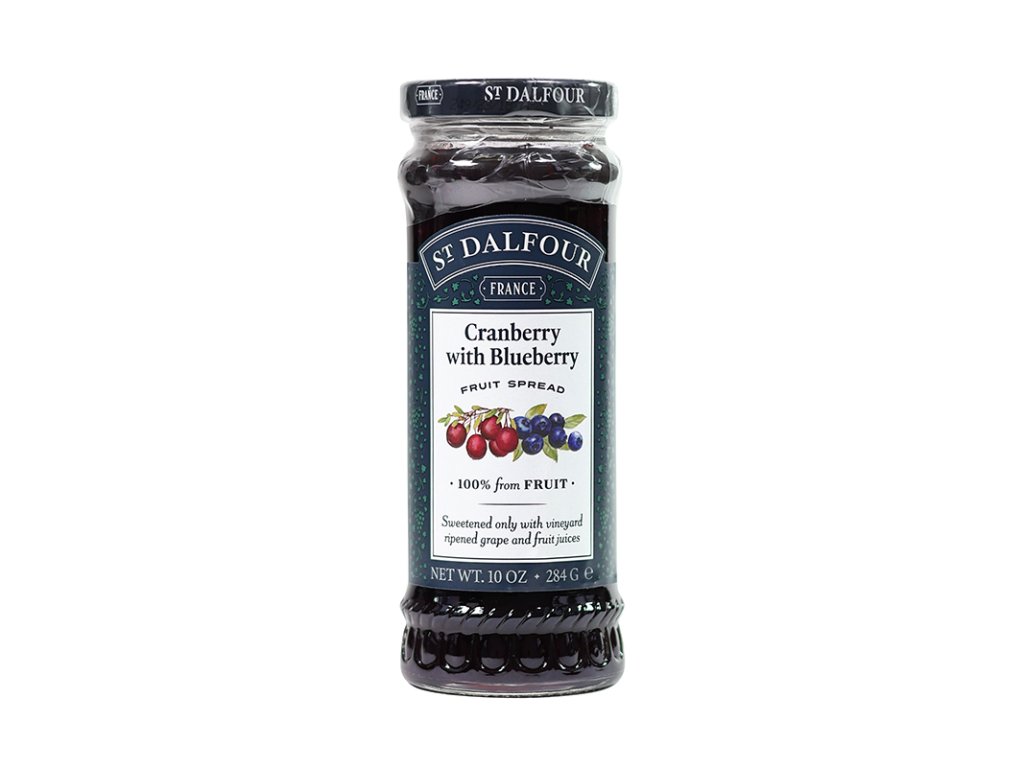 Brusinkový džem s borůvkami od francouzské společnosti St Dalfour je pasterovaný výrobek vysoké kvality s velkým množstvím kvalitního ovoce, připravený podle tradiční francouzské receptury. Džem je jemně vařený pro uchování přirozené chuti ovoce, slazený pouze hroznovým vínem a ovocnými šťávami (džusy). 100gr džemu obsahuuje 51gr ovoce.