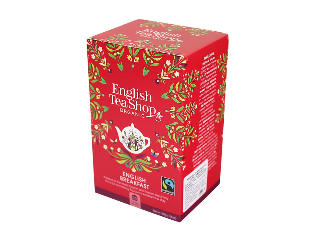 English Tea Shop je britská společnost, založená roku 2010, která dodává 100 % organické čaje, bez syntetických příchutí a barviv. Značka nese certifikáty bio a fairtrade kvality, veškerý obalový materiál i samotné čajové sáčky jsou biologicky odbouratelné a recyklovatelné, výroba je zcela bezuhlíková.