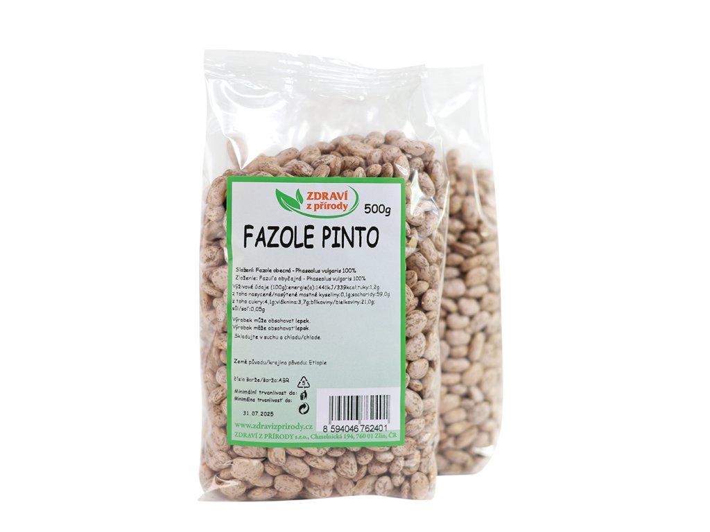 Fazole pinto jsou středně velké fazole, které jsou velmi oblíbené v mexické a americké kuchyni. Na rozdíl od našich běžně známých fazolí, mají fazole pinto moučnější strukturu a výraznější, jemně ostřejší chuť. Patří mezi suroviny s vysokým obsahem bílkovin, vlákniny, obsahují esenciální vitamíny a minerály, jako je železo, hořčík a kyselina listová. Mají široké využití a proto jsou praktickou surovinou pro každou kuchyni.