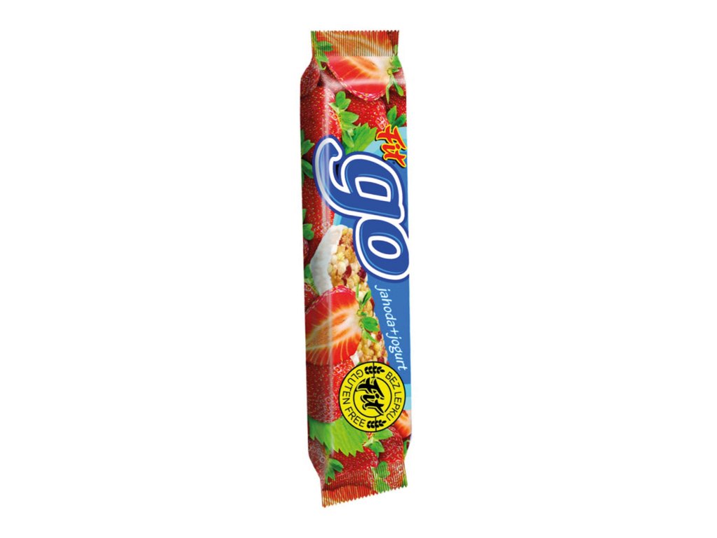 Jahodová müsli tyčinka Fit go s jogurtovou polevou je cereální tyčinka určená pro originální rychlé občerstvení, je vhodnou alternativou pro rychlou svačinku, zdravou verzí při chuti na něco sladkého nebo jako sladké zakončení po jídle. Je vynikajícím společníkem nejen v domácnosti, ale také v práci a hlavně při sportu a na cestách.