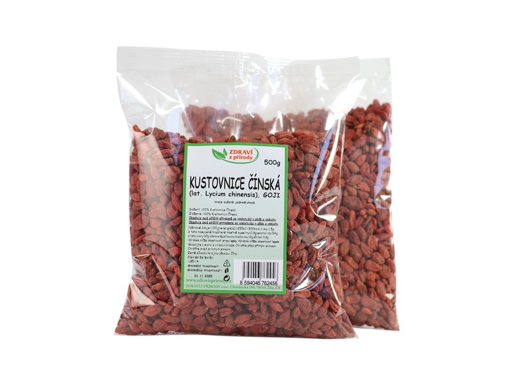 Goji jsou sušené plody kustovnice čínské. Obsahují 18 druhů aminokyselin a až 21 stopových prvků, mezi něž patří zinek, železo, měď, vápník, germanium, selen a fosfor. V porovnání s jinými plody jsou Goji jedním z nejbohatších zdrojů karotenoidů, obsahují beta karoten, zeaxantin, lutein, lykopen, kryptoxantin a xantofyl. Z viramínů obsahují goji mimo jiných hlavně vitamín C, B1, B2, B3, B6 a E.