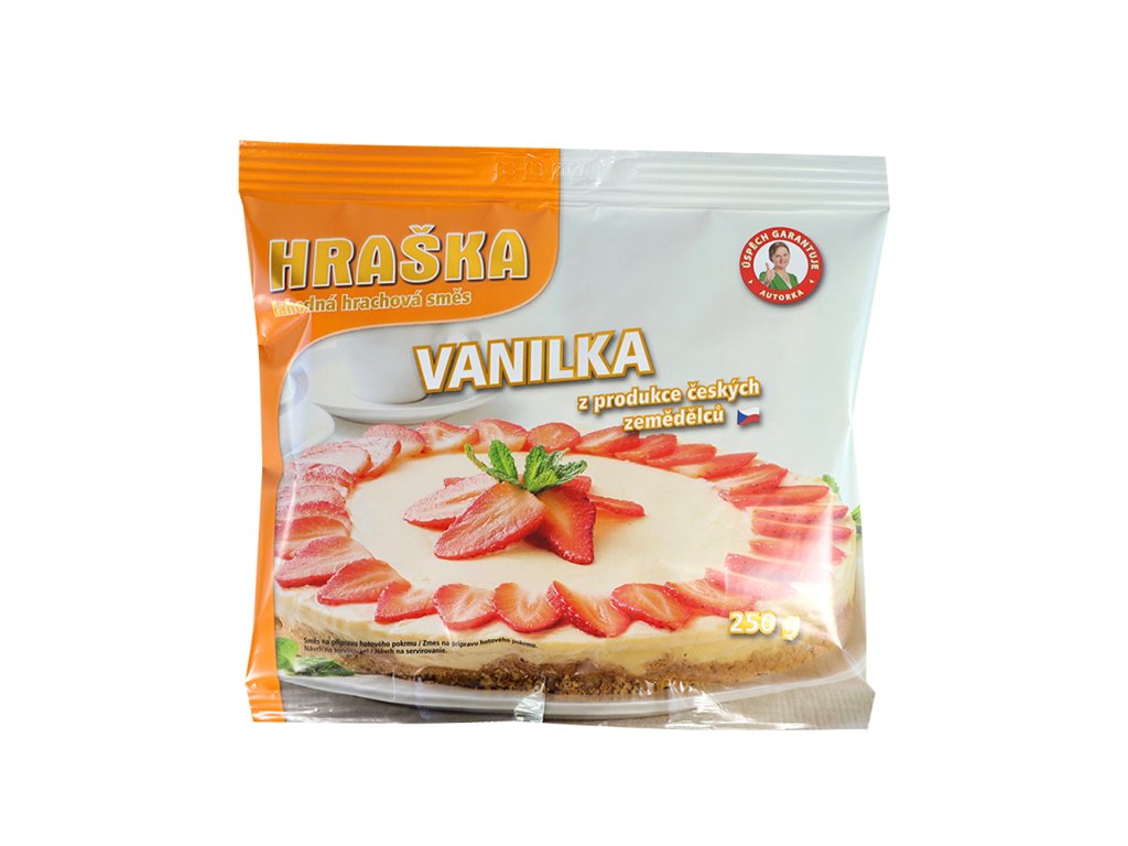 Hraška Vanilka je hrachová směs ochucená přírodní vanilkou. Přirozeně neobsahuje lepek, cholesterol, glutaman sodný, konzervanty ani barviva. Zlepšuje soudržnost těst a usnadňuje jejich zpracovávání. Díky těmto vlastnostem Hraška Vanilka umožňuje snížení nebo úplné vynechání vajec v těstech, především při použití celozrnné nebo bezlepkové mouky.