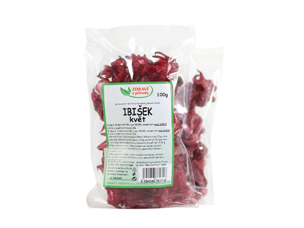 Květy ibišku jsou sušené proslazené květy ibišku sladkokyselkavé chuti. Jsou bohatým zdrojem vitamínu C a antioxidačních látek. Lze je konzumovat samotné jako mimořádně zdravou svačinku, nebo se přidávají do cereálních směsí, kaší, jogurtu a dalších pokrmů. Jsou výbornou netradiční variantou při chuti na něco neobvyklého nebo jako zdravá tečka po jídle. Jsou zárukou mlsání bez viny, jelikož obsahují množství minerálních látek a vitamínů.