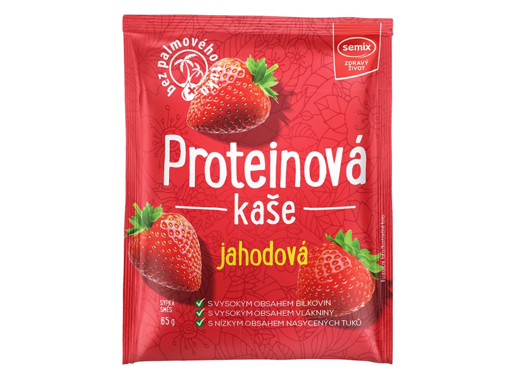 Proteinová kaše je sypká směs určená k rychlé přípravě kaše s vysokým obsahem bílkovin. Hlavní složkou směsi je oves, který v kombinaci s jahodami dělá z kaše zdravý, bohatě výživný pokrm.