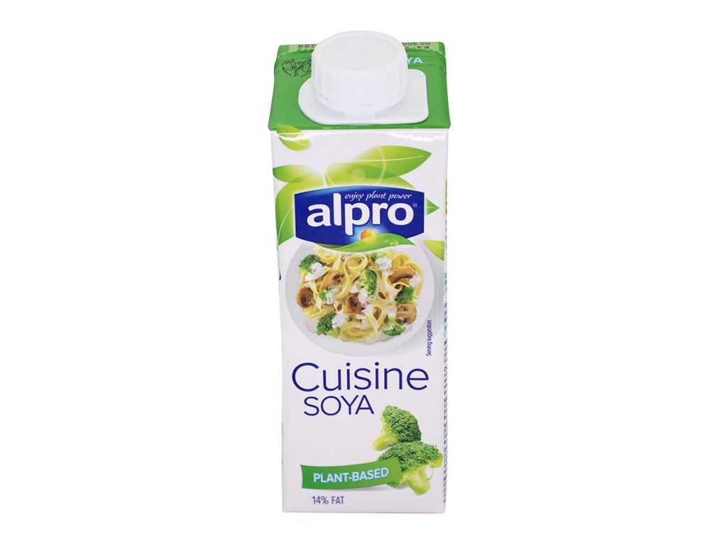 Naše nabídka bezlepkových rostlinných krémů na vaření v balení 250ml značky Alpro obsahuje krém rýžový a sojový a v balení 1l krém sojový.