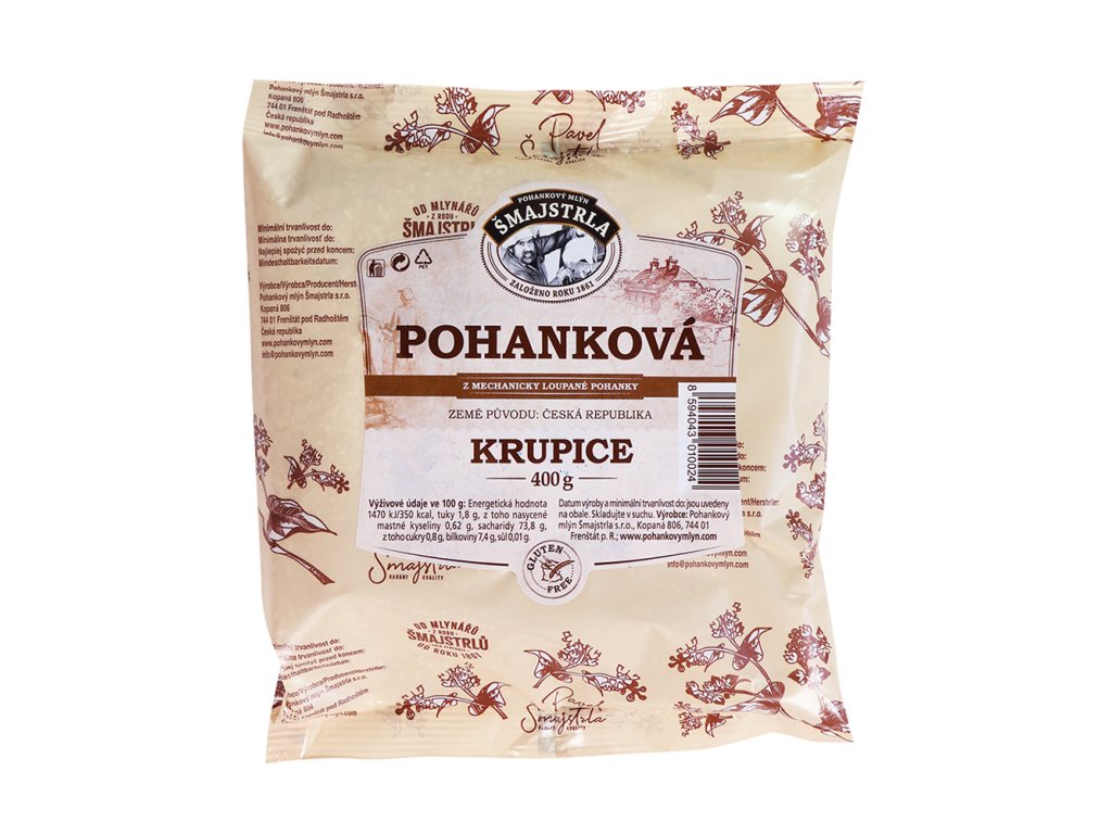 Pohankový mlýn Šmajstrla je česká společnost, která se specializuje na výrobu a zpracování bezlepkových produktů z pohanky, pěstované tradičním způsobem. Ve svém sortimentu nabízí pohankové mouky, krupici, těstoviny, kaše a další zdravé potraviny, které vznikají mechanickým zpracováním bez tepelných úprav, což pomáhá zachovat výživové hodnoty suroviny.