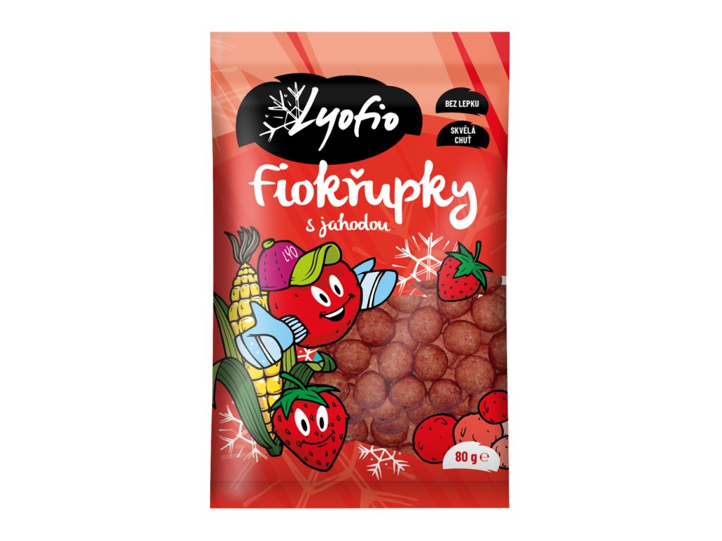 Kukuřičné křupky s jahodou jsou bezlepkové extrudované kukuřičné křupky obalené v jogurtové polevě a lyofylizovaném jahodovém prášku. Křupky jsou lehoučké a křupavé a mají autentickou chuť čerstvých jahod. Proces lyofilizace odstraňuje z ovoce 98%-99% vody. Ovoce si tak zachovává téměř všechny původní vlastnosti jako čerstvé ovoce, obzvláště zůstávají zachované veškeré vitamíny, minerály a další zdraví prospěšné látky.