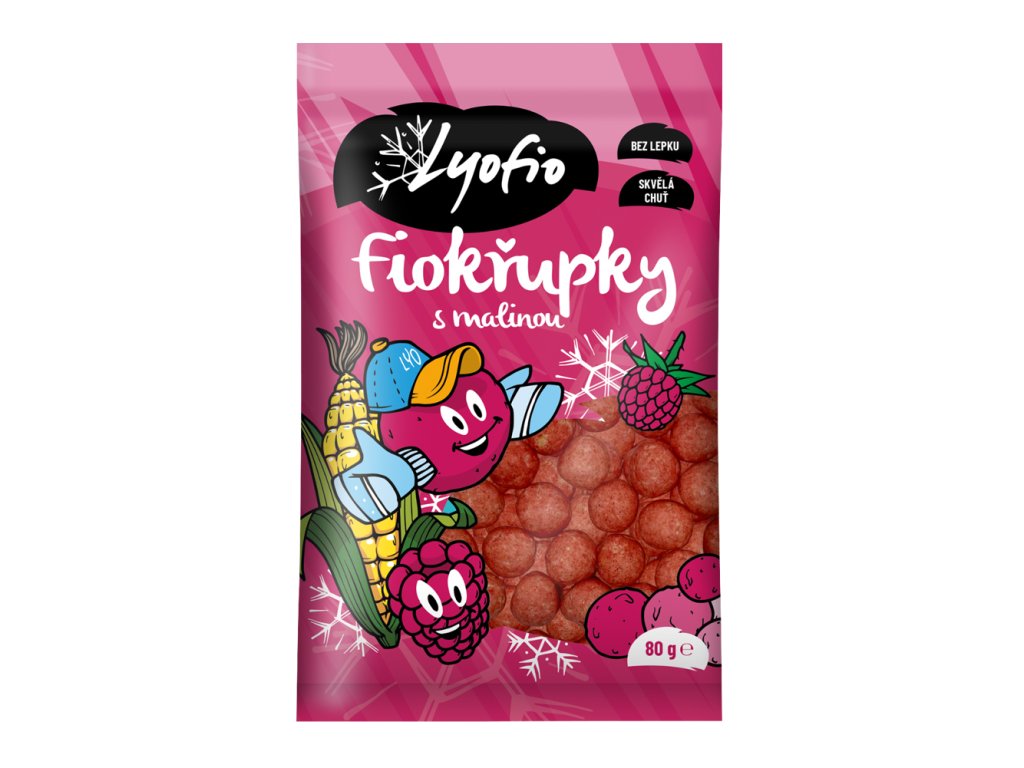 Kukuřičné křupky s malinou jsou bezlepkové extrudované kukuřičné křupky obalené v jogurtové polevě a lyofylizovaném malinovém prášku. Křupky jsou lehoučké a křupavé a mají sladkokyselou malinovou chuť. Proces lyofilizace odstraňuje z ovoce 98%-99% vody. Ovoce si tak zachovává téměř všechny původní vlastnosti jako čerstvé ovoce, obzvláště zůstávají zachované veškeré vitamíny, minerály a další zdraví prospěšné látky.