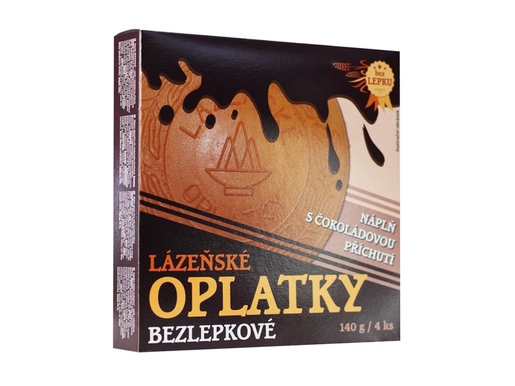 Naše nabídka bezlepkových lázeňských oplatků obsahuje: Lázeňské oplatky s čokoládovou náplní , Oplatkoví bezlepkáčci s vanilkovou náplní a Oplatkoví bezlepkáčci s čokoládovou náplní.