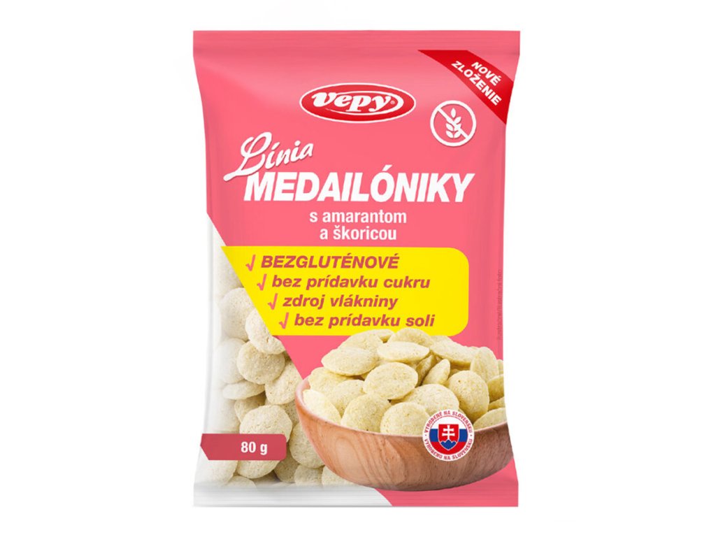 Naše nabídka bezlepkových medailonků značky Vepy obsahuje medailónky s minerálními látkami, s jablečnou vlákninou a s amarantem a skořicí.
