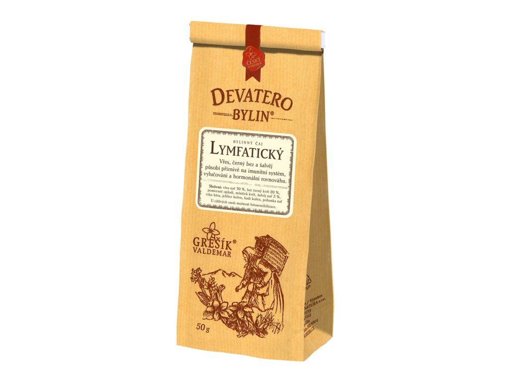 Lymfatický čaj je sypaný bylinný čaj z řady Devatero bylin s nezaměnitelným puncem jedinečnosti a kvality, vyrobený podle původní receptury Valdemara Grešíka. Vřes, černý bez a šalvěj působí příznivě na imunitní systém, vylučování a hormonální rovnováhu. U citlivých osob možnost fotosenzibilizace.
