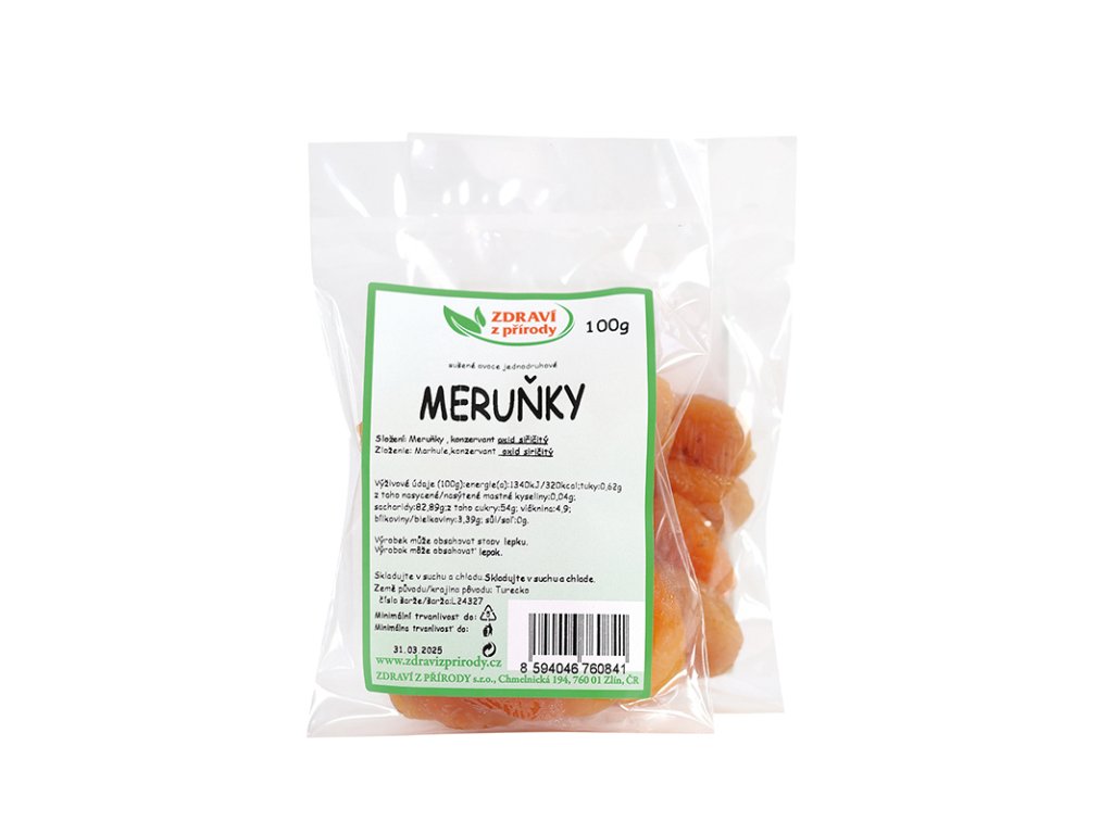meruňky ovoce sušené jednodruhové, konzervant oxid siřičitý E220