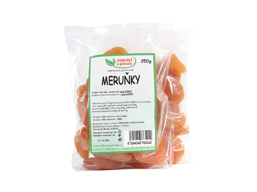meruňky ovoce sušené jednodruhové, konzervant oxid siřičitý E220
