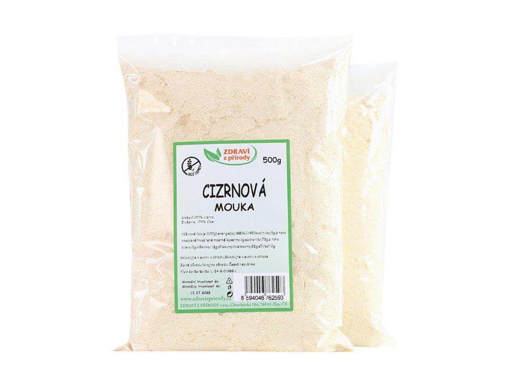 Cizrnová mouka je výbornou náhražkou pšeničné mouky, vhodná nejen pro bezlepkovou dietu. Navíc obsahuje bílkoviny a vlákninu, má výraznější chuť, je hutnější a po namočení je lepivější než klasická mouka.