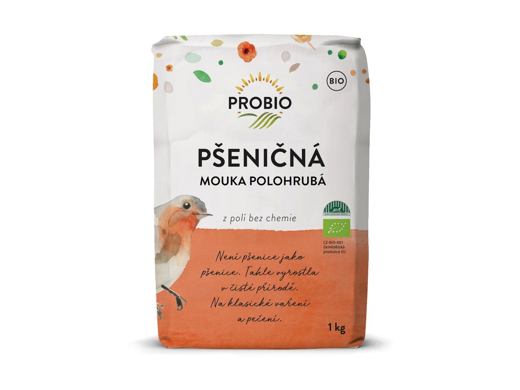 Bílá biomouka polohrubá od společnosti PROBIO je mouka mletá s dlouholetou zkušeností (od roku 1992). Jejich technologie jim umožňují odebírat zrno téměř "přímo z pole" a zpracovávat jej od počátku tedy od čištění, přes sušení, mletí až po konečné balení mouky. Zrno je šetrně sušeno teplým vzduchem, čímž si konečný produkt zachová své živiny. Mouky nejsou mlety do zásoby a proto jsou vždy čerstvé a voňavé. Pšenice pochází z ekopolí, pěstována je šetrně, s ohledem na půdu, vodu, ptáky, hmyz..