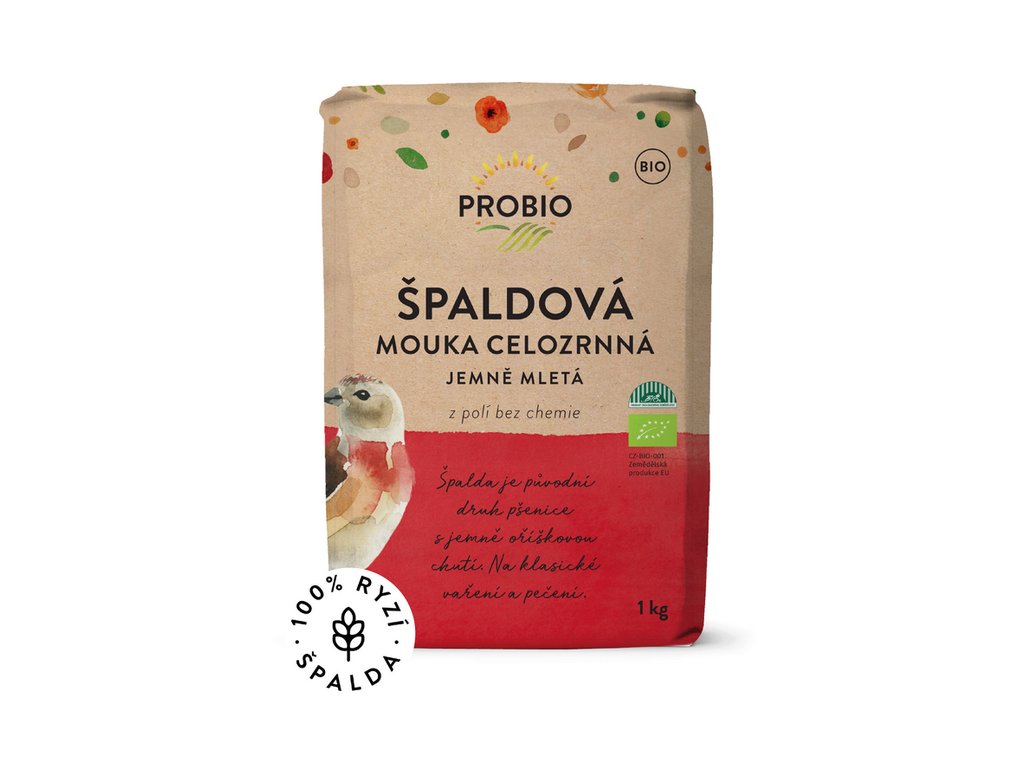 Celozrnná špaldová biomouka jemná od společnosti PROBIO je mouka mletá s dlouholetou zkušeností (od roku 1992). Jejich technologie jim umožňují odebírat zrno téměř "přímo z pole" a zpracovávat jej od počátku tedy od čištění, přes sušení, mletí až po konečné balení mouky. Zrno je šetrně sušeno teplým vzduchem, čímž si konečný produkt zachová své živiny. Mouky nejsou mlety do zásoby a proto jsou vždy čerstvé a voňavé. Pšenice pochází z ekopolí, pěstována je šetrně, s ohledem na půdu, vodu, ptáky, hmyz..