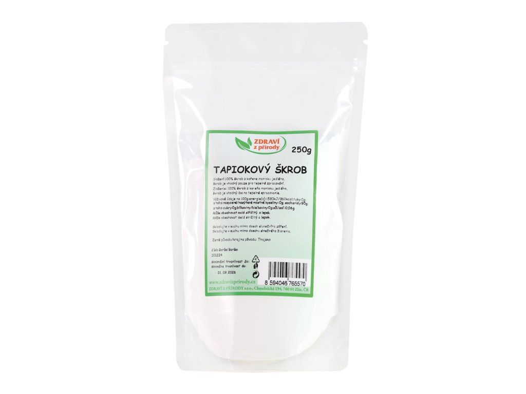 Tapiokový škrob je snadno stravitelný, chuťově neutrální univerzální škrob vhodný pouze k tepelnému zpracování. Jedná se o škrob z kořene manioku, který se pro svou velmi snadnou stravitelnost využívá k přípravě různých pokrmů. Pečivu dodává jemnost, vláčnost a prodlužuje jeho trvanlivost.