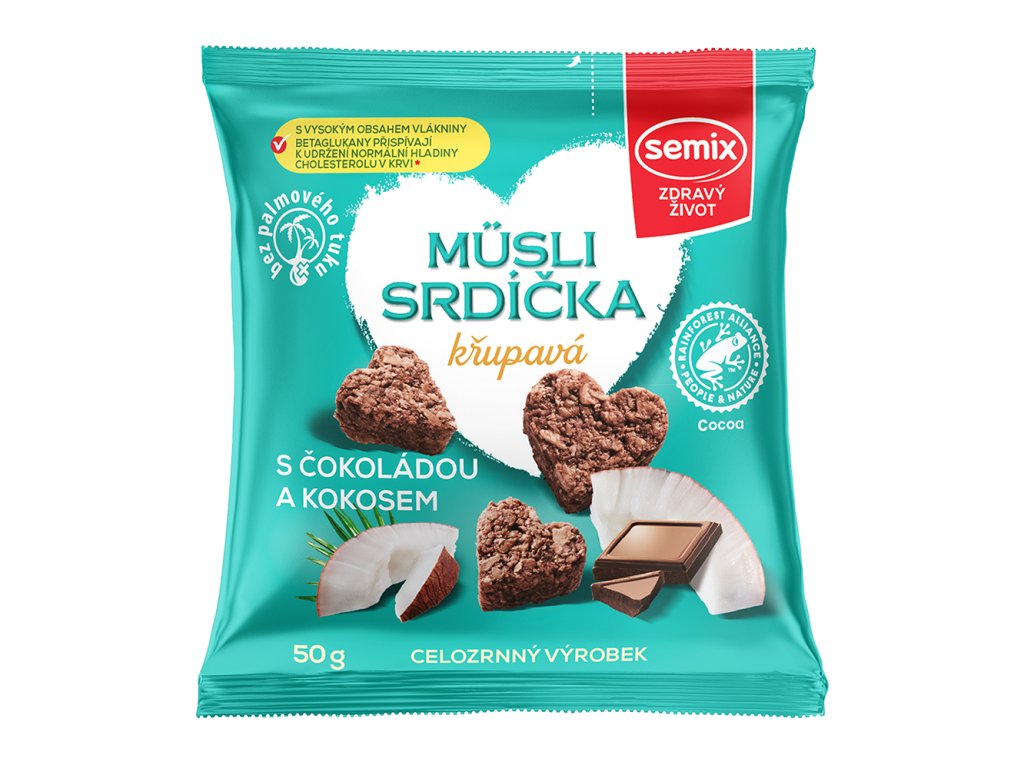 Musli srdíčka s čokoládou a kokosem 50g Semix