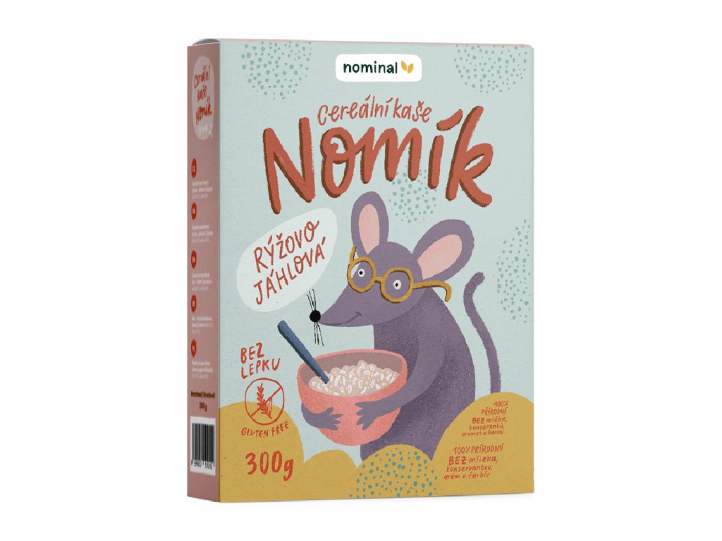 Bezlepkové cereální kaše Nomík je vyrobena ze dvou přirozeně bezlepkových surovin, jáhel a rýže. Protože k její výrobě je použita rýže loupaná (bílá), má nížší obsah vlákniny a je velmi šetrným zdrojem energie ve formě komplexních sacharidů. Díky těmto vlastnostem je vhodná i pro ty, kteří ze zdravotních důvodů musí množství vlákniny ve stravě omezit. Kaše má jemnou konzistenci, příjemnou chuť a lehkou stravitelnost.
