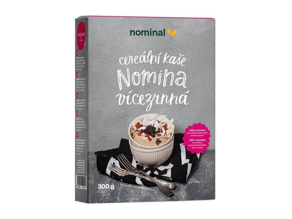 Cereální kaše Nomina jsou vlajkovou lodí společnosti Nominal, připravené z kvalitních, chutných surovin, bez umělých barviv a dochucovadel, tak, aby prospívaly Vašemu zdraví i figuře. Díky vysokým nutričním hodnotám, snadné přípravě a lehké stravitelnosti představují moderní a zdravý způsob výživy, určený pro každého. Jsou vhodné nejen pro bezlepkovou dietu, ale také jako ideální součást sportovního a zdravého jídelníčk