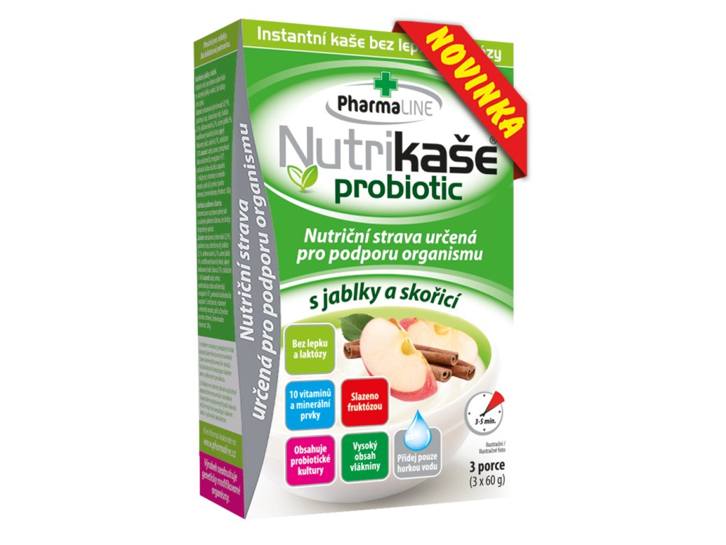 Nutrikaše probiotic s jablky a skořicí je chutná instantní rýžová kaše bez lepku a laktózy, s kousky sušených jablek. Díky svému složení a propracované receptuře je vhodná jak pro jedince s výživovým omezením, tak pro zájemce o racionální stravování, rekonvalescenty nebo jako ekonomická alternativa ke snídani či svačině.
