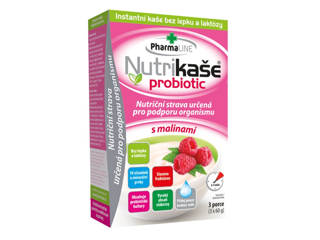 Nutrikaše probiotic s malinami je chutná instatní rýžová kaše bez lepku a laktózy, s mrazem sušenými malinami. Díky svému složení a propracované receptuře je vhodná jak pro jedince s výživovým omezením, tak pro zájemce o racionální stravování, rekonvalescenty nebo jako ekonomická alternativa ke snídani či svačině.