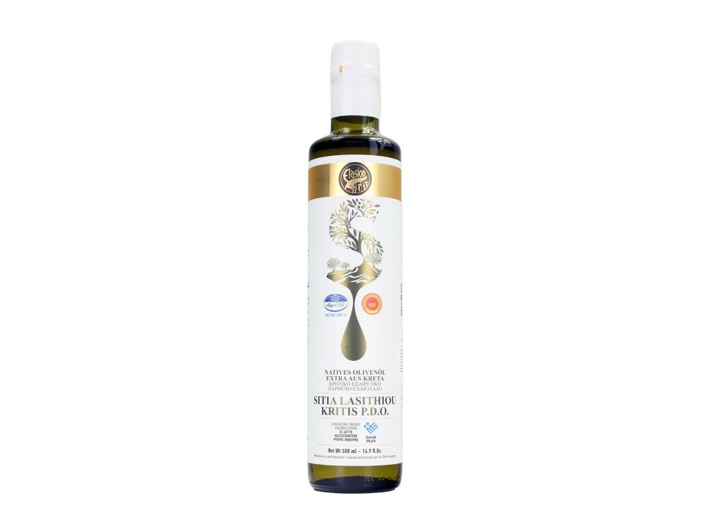 Extra panenský olivový olej P.D.O. Sitia z Kréty je certifikovaný olivový olej z oblasti Lasithi, vyrobený lisováním za studena z vysoce kvalitních, ručně sbíraných oliv odrůdy Koroneiki s důrazem na kvalitu a zkušenost výroby olivového oleje od rodinné společnosti Elasion, která se zabývá pěstováním oliv a výrobou vysoce kvalitního olivového oleje od roku 1975.