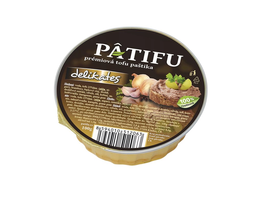 Paštika delikates od české společnosti Veto Eco je rostlinná paštika s příchutí cibulky a droždí zhotovená z tofu, v praktickém balení, vhodná k využití pro rychlou svačinku nejen doma, ale také v práci, na výletech nebo při cestování. Tofu je sójový sýr, který se vyrábí srážením sójového mléka a obsahuje velké množství bílkovin, vápník, hořčík, vitamin A a kyselinu listovou. Dále je zdrojem esenciálních aminokyselin a může obsahovat i další minerály jako je železo, mangan, měď, selen, zinek a fosfor.