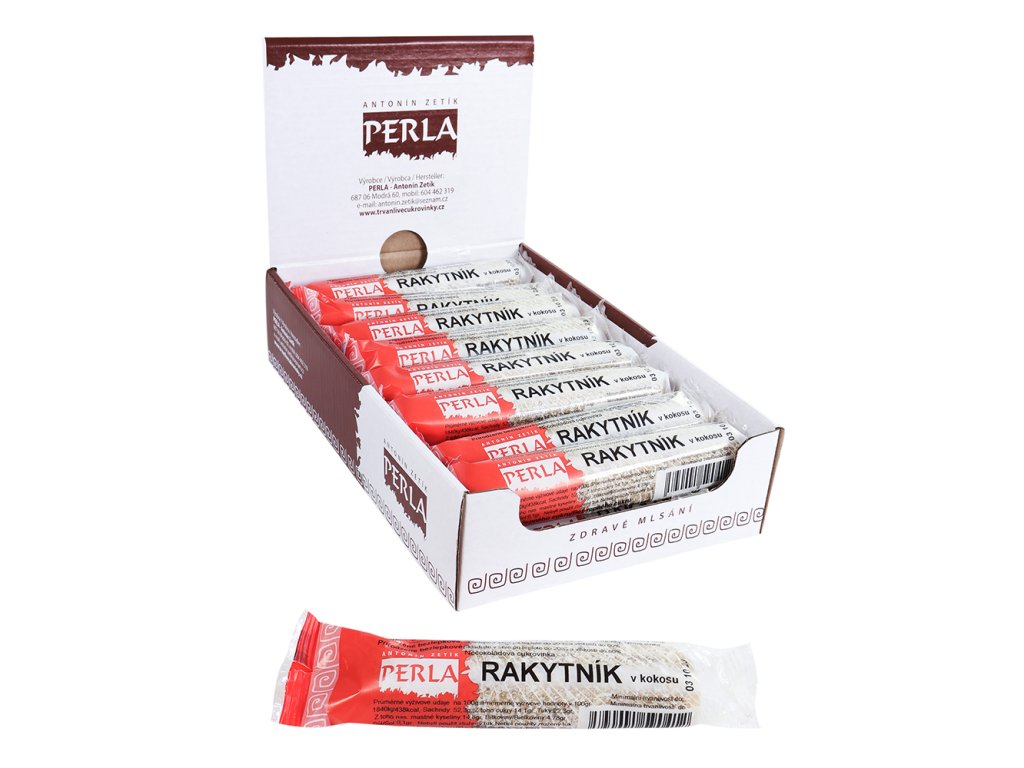 Nabídka tyčinek od společnosti Perla -Antonín Zetík obsahuje tyčinky semínkové , proteinové sladové, marcipánové , rakytníkové v kokosu , švestkové s chia , arašídové , goji v kokosu , višňové s kokosem , konopné meruňkové , karobové , brusinkové v kokosu a čokokmen bez cukru.