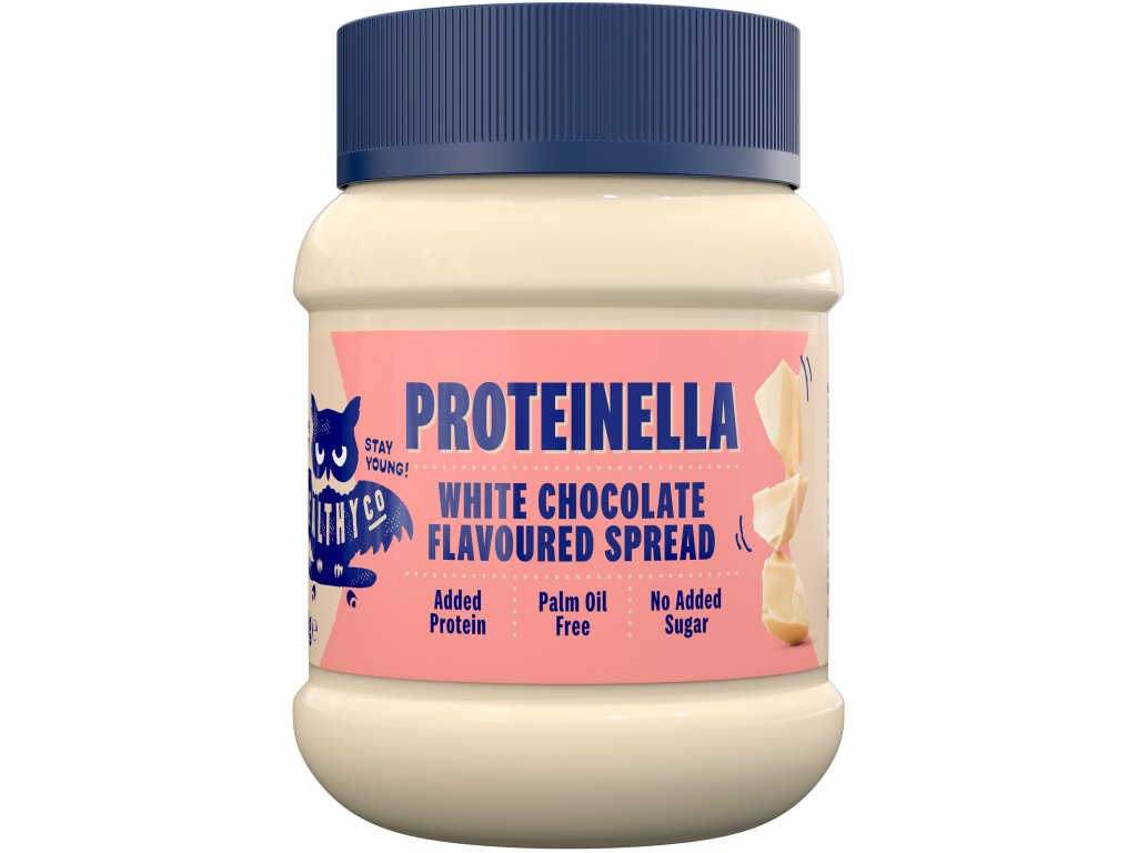 Proteinella s příchutí bílé čokolády od švédské společnosti HealthyCo je pomazánka s příchutí bílé čokolády obohacená o syrovátkovou bílkovinu, bez přidaného rafinovaného cukru a palmového oleje.