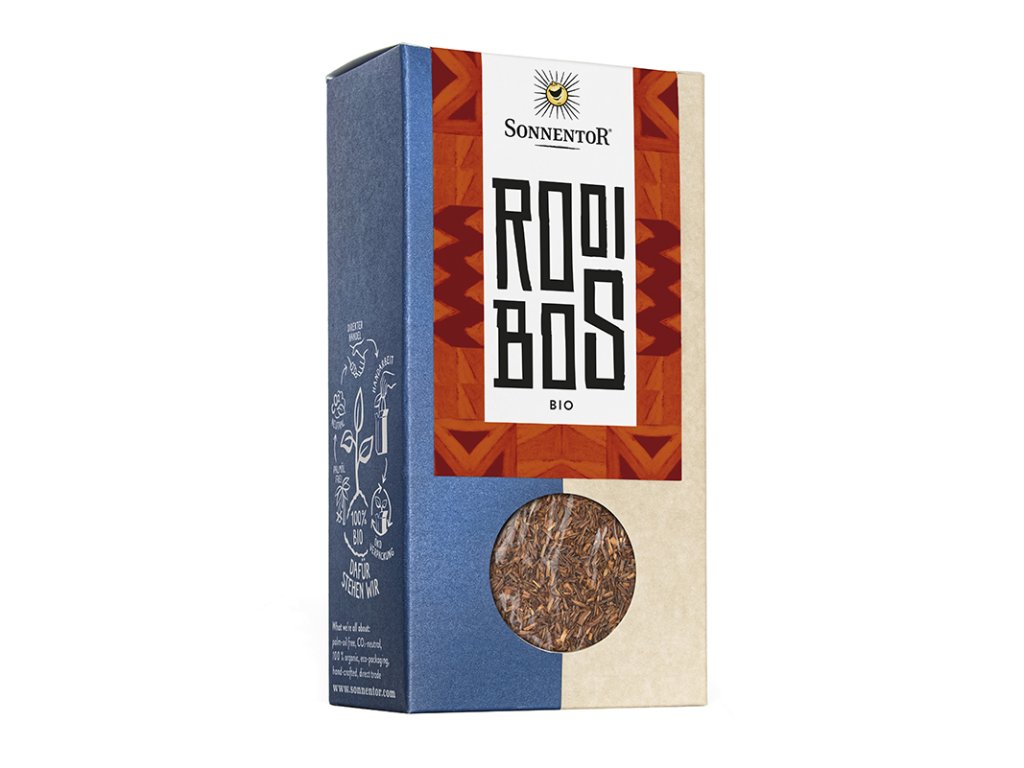 Rooibos se vyrábí z listů keře nazývaného čajovec Kapský. Tento červený keř je králem buše. Díky své podmanivé chuti se stal národním nápojem na jihu Afriky. Výborný je čistý, s kapkou mléka nebo lžičkou medu. Neobsahuje kofein.