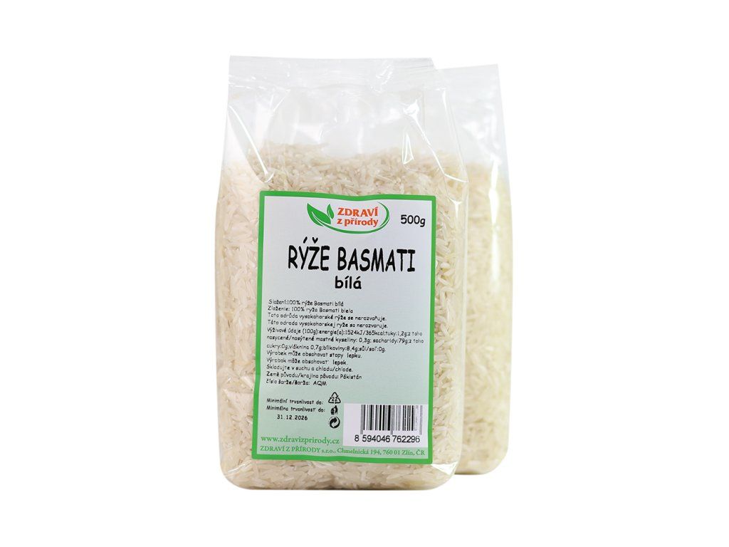 Basmati rýže bílá získala svůj název podle své příjemné vůně. Basmati znamená v sanskrtu „voňavá“. Její zrno je krásně štíhlé a podlouhlé a po uvaření zůstává dokonale sypké. Basmati bílá prochází mechanickým loupáním a obrušováním, a tak vyniká čistou bílou barvou. Basmati rýže je bohatým zdrojem sacharidů s téměř nulovým obsahem tuků a obsahuje vitamíny skupiny B, minerály včetně železa, hořčíku, zinku a draslíku.