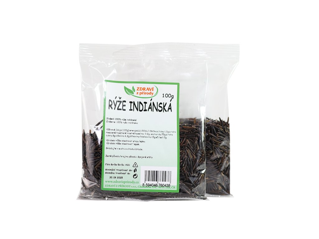 Indiánská rýže je známá také pod názvem divoká rýže a je bohatá na sacharidy, vitamíny skupiny B, bílkoviny, minerály, vlákninu, omega 3 a 6 mastné kyseliny. Obsahuje také esenciální aminokyselinu lysin, která je důležitá pro stavbu bílkovin, budování svalů, vstřebávání vápníku či při hojení. Svou černou barvou a oříškovou chutí činí jídla nejen zajímavá chuťově, ale také esteticky.