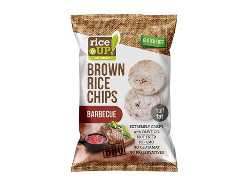 Rýžové chipsy Barbecue jsou extrémně křupavé chipsy vyrobené z hnědé rýže, bez konzervantů a glutamátů a jsou zdravou alternativou klasických smažených brambůrek. Hnědá rýže je bohatá na vitamíny skupiny B, jako je thiamin (B1), riboflavin (B2), niacin (B3) a pyridoxin (B6). Dále obsahuje minerály jako hořčík, fosfor, selen, železo a mangan. Nechybí ani vláknina, která je důležitá pro správné trávení a antioxidanty.