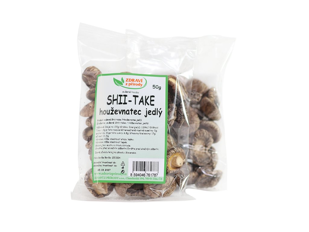 Shiitake nebo-li Houževnatec jedlý je jedlá houba pocházející z východní Asie, která je oblíbená v orientální kuchyni pro svou masitou konzistenci a silné aroma, a která je hojně využívána v tradiční čínské medicíně. Shiitake obsahuje širokou škálu výživných látek, včetně vitamínů B1, B2, B3, B5, B6, B9, D2 a minerálů jako je měď, zinek, selen, mangan. Dále obsahuje aminokyseliny, polysacharidy (lentinan, beta-glukany), mastné kyseliny, terpenoidy, steroly, enzymy a lykopen.